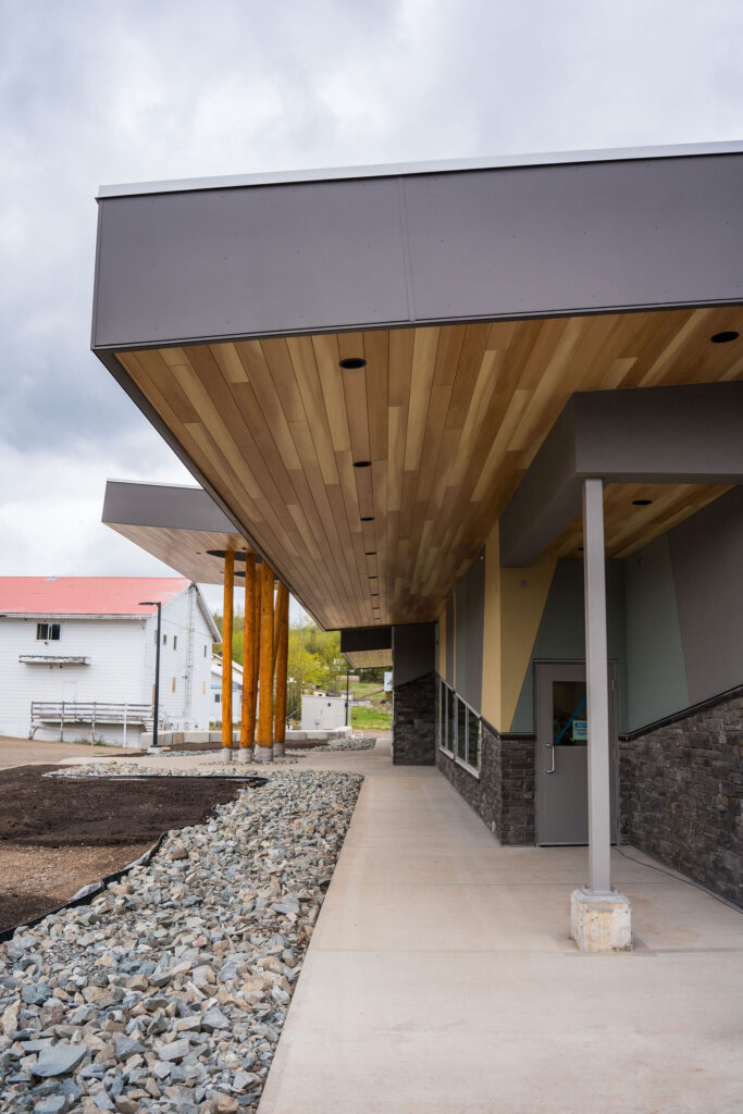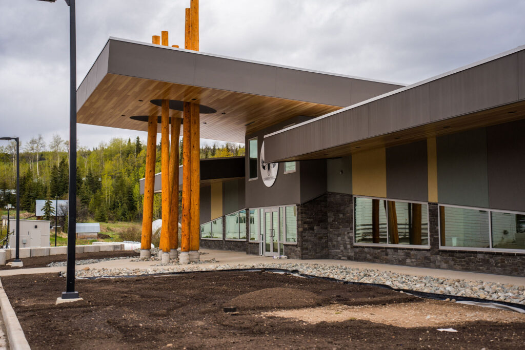 The project incorporates 12 custom logs crafted by local First Nation artists, embedding cultural significance, and features striking cantilevered steel canopies at main entrances for aesthetic appeal and durability. Marmot Builders provided well-paying construction and site labor jobs for local First Nation members for over two years, fostering community engagement. Collaborating closely with the Nation, the building reflects community values while meeting operational needs, serving as a functional and culturally significant space that promotes community empowerment and regional growth.